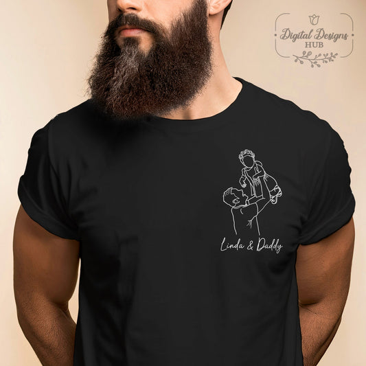 Aangepast geborduurd vaderportret-shirt - Gepersonaliseerd fotocadeau voor vader