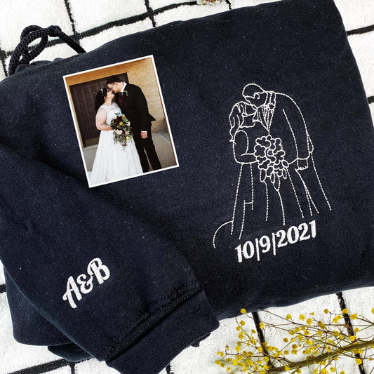 Aangepast geborduurd portret van foto Sweatshirt, geborduurde sweatshirts voor koppels, gepersonaliseerd cadeau voor koppels, kerstcadeau voor koppels