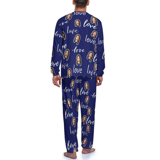 Aangepast gezicht, liefdesbrieven, herenpyjama's, gepersonaliseerde nachtkledingsets met foto, grappige nachtkleding met lange mouwen voor hem