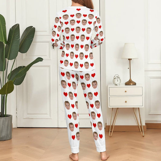 BEKIJK VOLGENDE Zoom Aangepaste babygezichtpyjama Love Heart Nachtkleding Gepersonaliseerde damespyjamaset met ronde hals en lange mouwen