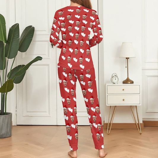 Aangepaste vriendje gezicht liefde hart kerstmuts pyjama nachtkleding gepersonaliseerde vrouwen ronde hals pyjama set