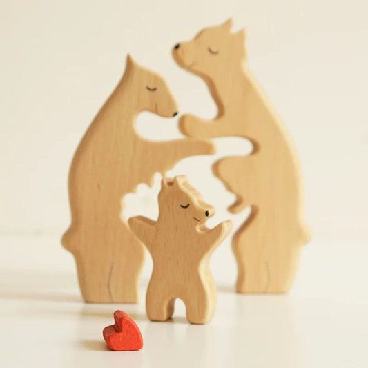 Gepersonaliseerde berenfamilie met hart houten puzzel jubileumcadeau