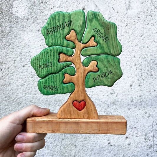 Gepersonaliseerde hartvormige houten puzzel met aangepaste familienamen, warm cadeau