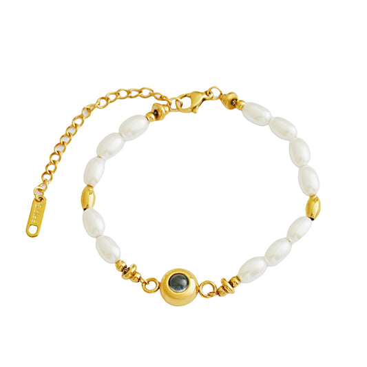 Gepersonaliseerde Fotoprojectiecirkel Vintage Luxe Armband 18k Verguld Roestvrij Stalen Parelarmband Cadeau Voor Haar
