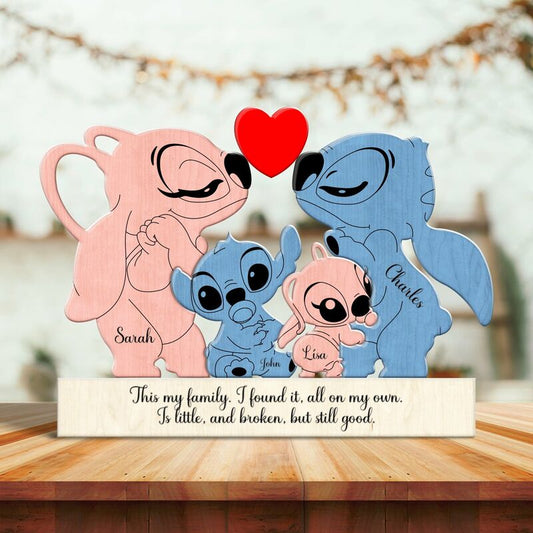 Gepersonaliseerde houten familiepuzzel met stripfiguur voor een schattig stel