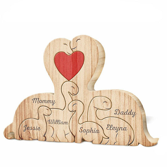Gepersonaliseerde houten dinosaurusfamiliepuzzel Verwarmend vaderdagcadeau