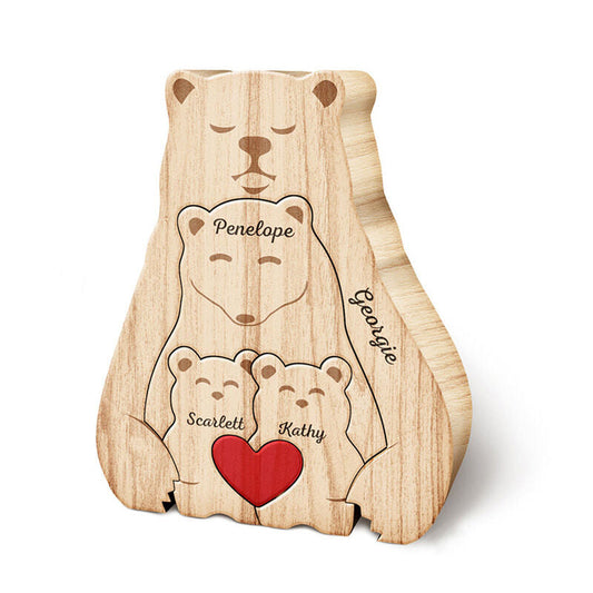 Gepersonaliseerde houten familiebeerpuzzel met liefde en herdenkingskerstcadeau voor familie