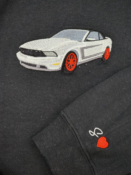 Op maat geborduurde auto hoodie, auto foto geborduurd, aangepaste auto hoodie