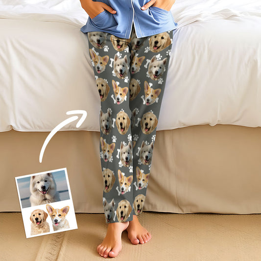 Aangepaste paar gezicht hond bot pootafdruk nachtkleding gepersonaliseerde vrouwen & mannen pyjama partij lange pyjamabroek