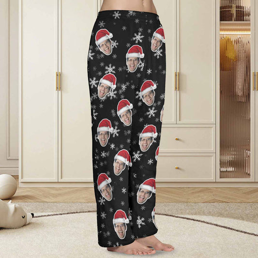 Custom Face Christmas Snowflake Pyjamabroek Comfortabele nachtkleding Lange pyjamabroek voor heren Dames