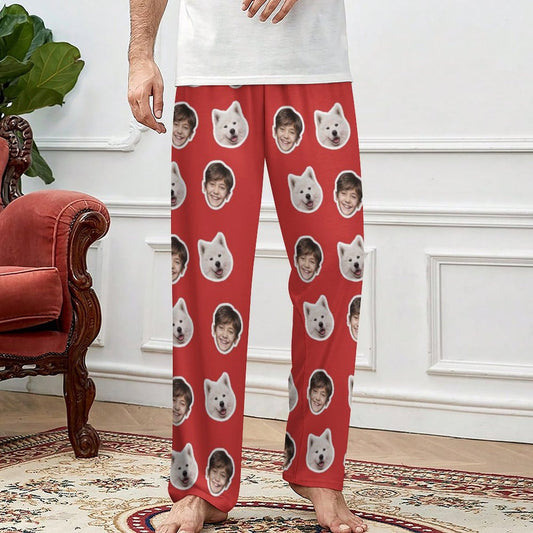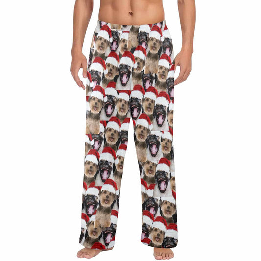 Pyjamabroek - Custom Face Pet Christmas Red Hat Comfortabele nachtkleding Lange pyjamabroek voor heren Dames