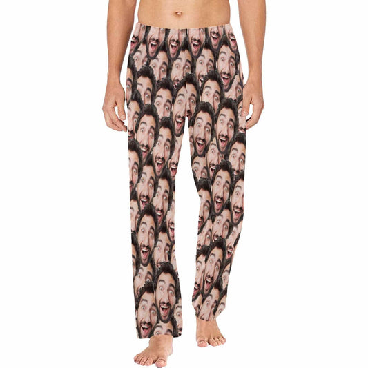 Lange pyjamabroek met aangepaste foto en naadloze afbeeldingen, gepersonaliseerde pyjamafeestnachtkleding voor heren
