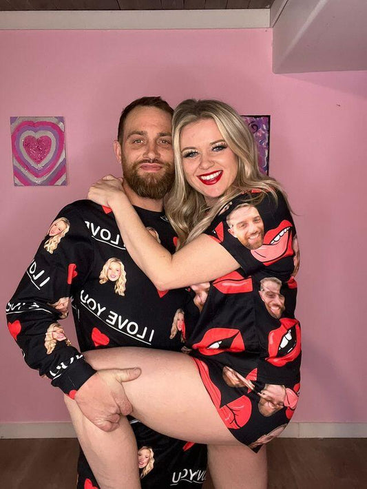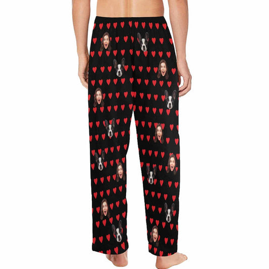 Aangepaste gezicht I Love You herenpyjama's, gepersonaliseerde foto-nachtkledingsets