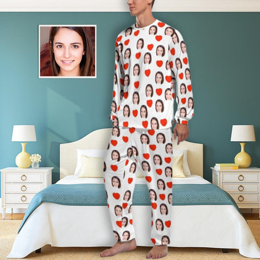 Aangepaste gezicht liefde hart vriendin witte heren pyjama gepersonaliseerde grappige lange mouw nachtkleding voor hem