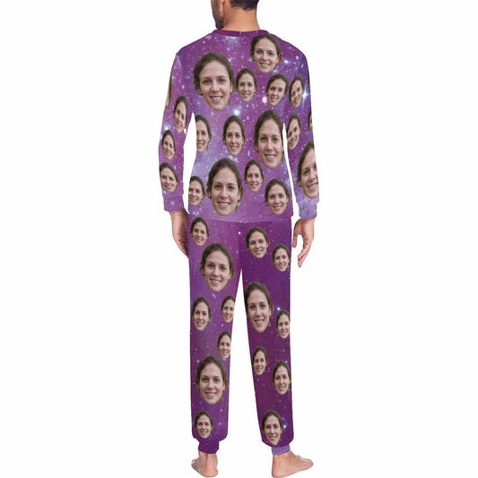 Paarse Loungewear Custom Face Paarse Sterrenhemel Nachtkleding Gepersonaliseerde herenpyjamaset met all-over print