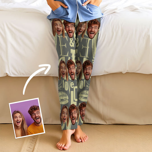 Aangepaste gezichtspyjama voor koppels, pyjamafeest, lange unisex pyjamabroek voor hem en haar