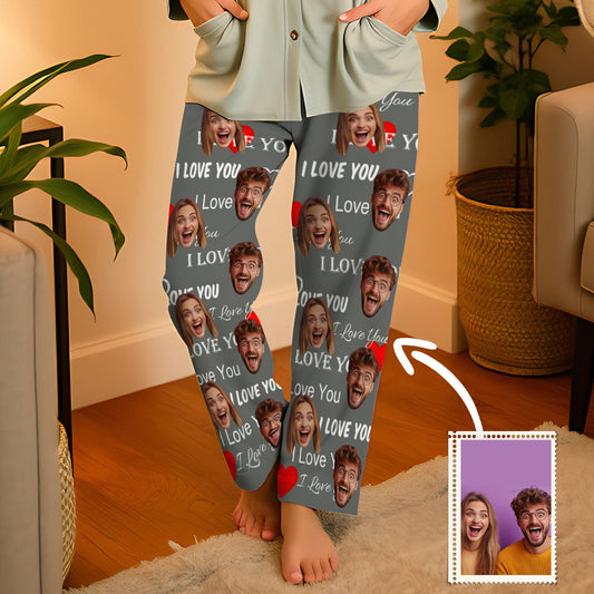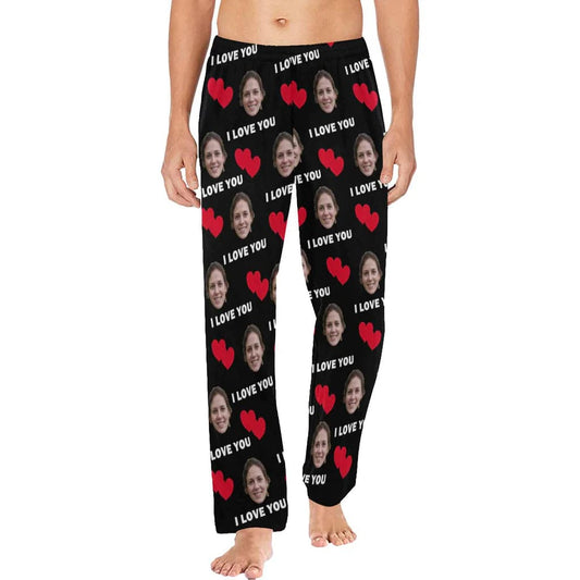 Aangepaste I Love You lange pyjamabroek gepersonaliseerde pyjamafeestnachtkleding voor heren