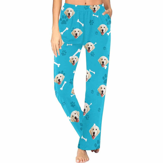 Aangepaste paar gezicht hond bot pootafdruk blauwe achtergrond nachtkleding gepersonaliseerde vrouwen & mannen pyjama partij lange pyjamabroek