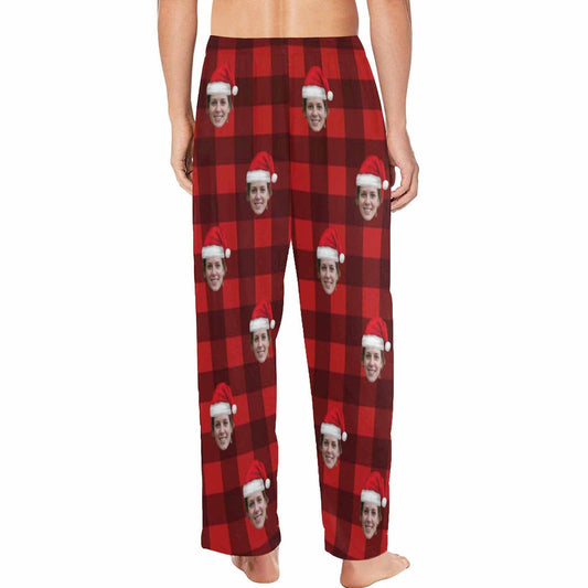 Aangepaste gezicht rode geruite kerstmuts nachtkleding gepersonaliseerde dames en heren pyjama party lange pyjamabroek
