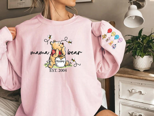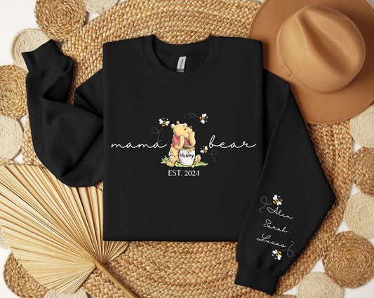 Aangepaste Mama Bear Sweatshirt, Mama Est met kindernaam op mouw Sweatshirt, gepersonaliseerde mama sweatshirt, aangepast Moederdag cadeau