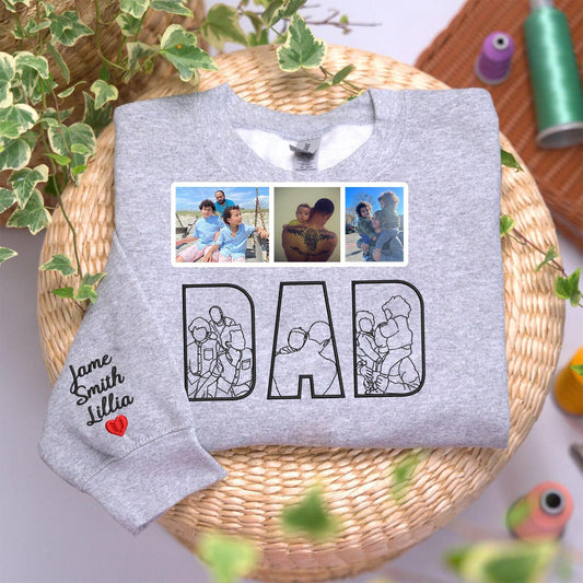 Aangepast geborduurd vaderportret-shirt - Gepersonaliseerd fotocadeau voor vader
