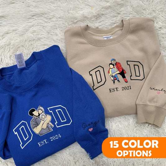 Geborduurde trui met vader-dochter omtrek | Gepersonaliseerde truien voor vaders | Gepersonaliseerde trui met vaderportret | Vaderdagcadeaus voor vaders