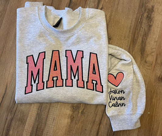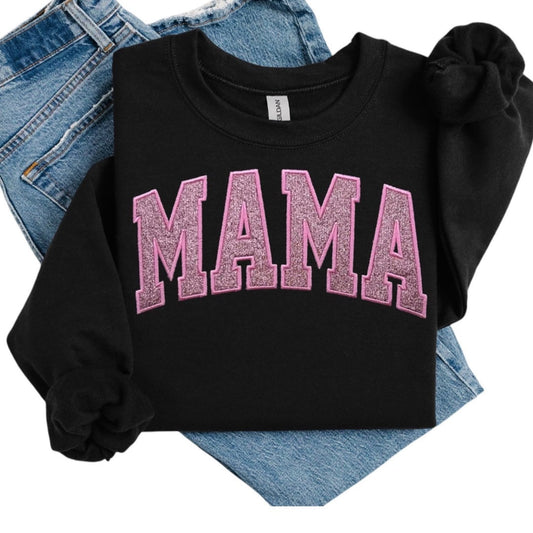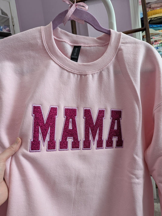 Sw Sparkling Mama Glitter Applicatie Geborduurd Sweatshirt, Aangepaste Glitter Crewneck, Mooie Glitter Mama Geborduurde Trui, Valentijnscadeau