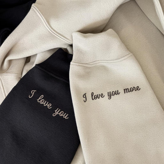 Geborduurde Romeinse cijfers Hoodie | Jubileumdatum Koppel Sweatshirt | Initialen op de mouw | Gepersonaliseerd Valentijnsdag Kerstcadeau
