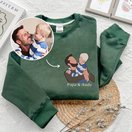 Gepersonaliseerde vadersweater met foto, geborduurd portret van foto op hoodie