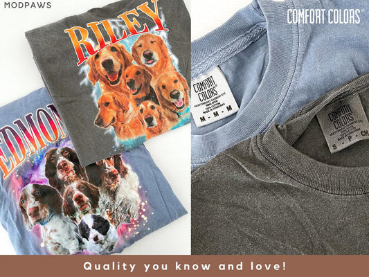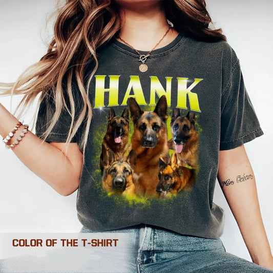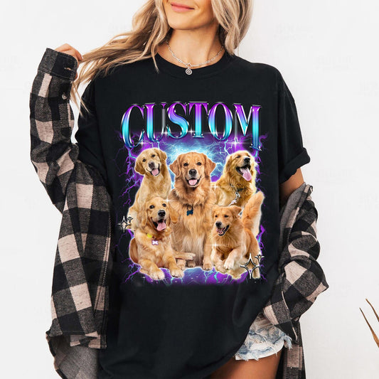 Aangepaste Comfortkleuren Retro Hondenshirt, Gepersonaliseerd Huisdier T-Shirt, Aangepaste Jaren 90 Fotoafbeelding, Bootleg Rap Dog Shirt, Custom Design Tee