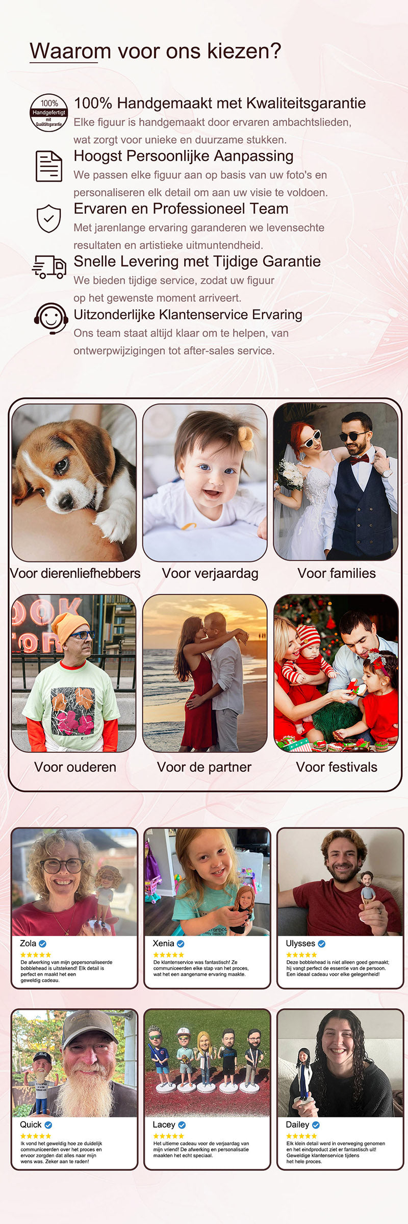 Verzamelbare en individuele bobblehead. Een uniek cadeau voor je vrouw, vriendin en je geliefde, vriend. Dit ontwerp is zeer veelzijdig en ideaal voor vele gelegenheden, waaronder sportwedstrijden, onderwijs, prijzen, verjaardagsfeestjes, bruiloften en meer!